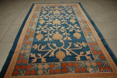 Vendo splendido tappeto "Pekino" 100l, annodato a mano, misura 150x85 cm, vello in lana, nuovo e mai calpestato, colore prevalente azzurro.