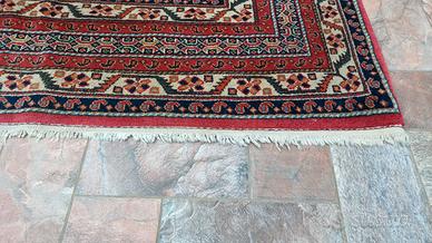 Il tappeto è in buone condizioni generali per la sua età, ma presenta dei normali segni di usura tipici di un tappeto d'epoca. In particolare: