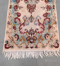 117 x 58 cm. Tappeto orientale Annodatura a mano Origine Persia Città di Kerman Impianto millefiori Colori vegetali Lana su cotone. Epoca 1940 Tenuto bene . Buona visione!