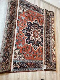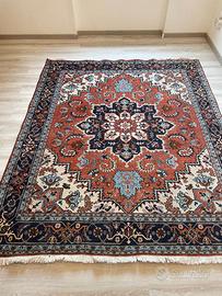 Splendido tappeto persiano Ardabil annodato a mano, realizzato secondo la tradizione artigianale iraniana. Il tappeto si presenta in ottime condizioni ed è stato lavato accuratamente e pulito professionalmente, pronto per essere utilizzato. Le misure sono 234 × 200 cm, ideali per valorizzare un soggiorno, una sala da pranzo o uno studio. Il design è caratterizzato da un ricco medaglione centrale di grande impatto visivo, circondato da una composizione armoniosa di motivi floreali e geometrici finemente dettagliati. Il fondo prevalente è in una calda tonalità rosso ruggine, elegantemente abbinata a blu notte, avorio, azzurro polvere e accenti beige, che donano profondità e raffinatezza all’insieme. La cornice decorata con motivi floreali ripetuti incornicia il tappeto con equilibrio e simmetria, esaltando il disegno centrale. La qualità dell’annodatura e la ricchezza dei dettagli rendono questo tappeto Ardabil un pezzo di grande valore estetico, capace di aggiungere carattere, calore ed eleganza a qualsiasi ambiente. La consegna senza impegno zona Roma, castelli è gratuita.