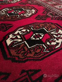 Tappeto annodato a mano Bukara Torkaman, quindi pakistano. In ottime condizioni: colori lucenti e senza macchie o altri fattori rovinanti.