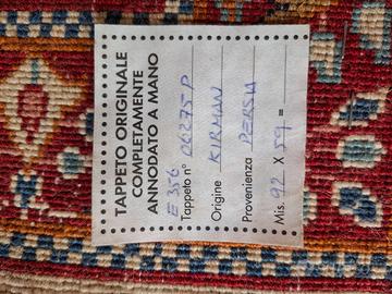 vendo tappeto persiano annodato a mano, misure cm 92x59, mai usato.