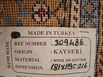 Tappeto persiano annodato in Turchia realizzato in lana. Dimensioni 181cm x 119cm.