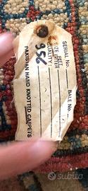 Tappeto originale : Pakistan Hand knotted carpets . ( misura 190 X 120 ) Le fibre utilizate sono lane naturali al 100% e filate a mano , tinte vegetali , caratteristica morbitezza e rubustezza del tappeto . Inica produzione numerato .