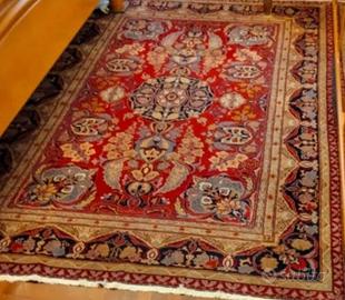 Tappeto persiano di pregio, Tabriz, annodato a mano, di grande dimensione (206x146 cm). I colori sono vivaci e intensi creando un effetto elegante e raffinato. - Realizzato in pregiata lana - Motivo tradizionale Tabriz - Perfetto stato di conservazione. Descrizione. Grande, elegante tappeto persiano, di qualità e pregio, TABRIZ, stimato da esperto (foto), e da certificato di provenienza, su fondo rosso con cornice rossa e blu imperiale, nodi medio piccoli. Colori accesi e bel disegno elegante e lineare. Ovviamente annodato a mano. Il tappeto è vero persiano ( precisazione doverosa visto quello che vedo pubblicato qui e altrove). Dimensioni: 2,06 x 1,46 metri; peso circa 7,5 kg più imballaggio. Il tappeto che presento, di qualità ( con colori naturali, vello morbidissimo, disegno classico, nodi medio piccoli) è esattamente quello delle foto e il suo stato è quello che si vede ( integro, senza macchie o fori, senza restauri, sanificato professionalmente, 90 euro), vello basso in lana lucida che conferisce al tappeto brillantezza, morbidissimo, ordito e trama in cotone. Epoca : seconda metà del 900. Per ulteriori informazioni, prima e nn dopo l'acquisto. Spedizione privata 35 euro