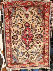 Tappeto scendiletto persiano Hamadan, sui colori rosso panna e piccoli inserti grigio-azzurro, misure 095x066, ottimo stato.