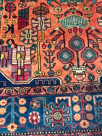 • Stato di conservazione: Ottime condizioni generali. Il vello è uniforme e i colori sono ancora vivaci e luminosi. Presenta i caratteristici segni dell'artigianalità (piccole variazioni di tono "abrash") che ne certificano l'originalità.