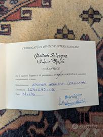 Tappeto persiano intrecciato a mano in cashmere imperiale pakistano, comprato negli anni 90'. Fermo da qualche anno, da ripulire in lavanderia. Comprensivo di certificato di qualità internazionale.