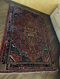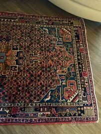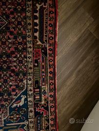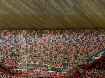 Bellissimo tappeto persiano lavorato a mano in seta caratteristica dei tappeti persiani che cambiando la posizione cambia anche la tonalita' del tappeto diventando più chiara o più scura. Su una parte del bordo destro presenta tessuto un po' consumato come si può vedere nelle foto. Misure 2,30x 1,48