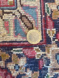 * Condizioni: buone generali. Struttura sana, frange complete. Presenta una leggera scoloritura in un angolo e necessita di lavaggio professionale