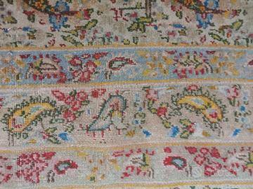 Vendo tappeto persiano Kashan di circa 60/70 anni in lana di alta qualità per il vello e cotone per la trama. Il tappeto presenta segni del tempo come si vede nelle foto n.4 e n.4 mantenendo intatta la struttura generale e l'eleganza del disegno. Le sue dimensioni importanti, cm. 416x313 circa, lo rendono adatto anche ad un albergo o ad un ufficio dirigenziale. Valuto proposte di acquisto, ho inserito il prezzo di 1€ in quanto il sistema non prevede la dicitura "da definire"