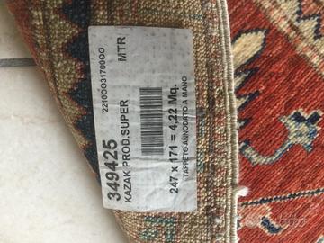 Vendo tappeto originale Persiano annodato a mano con certificato di autenticità, perfetto stato, posto in una sala da pranzo come arredamento ma praticamente mai calpestato, disegni geometrici che si sposano gradevolmente con qualsiasi tipo di arredo, sia il classico sia per creare un piacevole stacco e contrasto con l'arredamento più moderno.