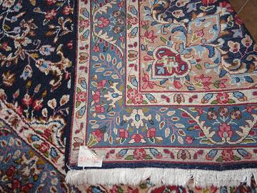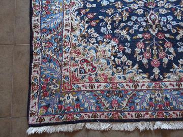 Tappeto persiano molto Robusto, in lana, disegno floreale, con medaglione su fondo blu, con classici e tipici decori floreali e colori vegetali, completamente annodato a mano lana sul telaio di cotone, ottime condizioni misure: 237 x 150 cm. Ideale per il Soggiorno, per la sala, per un’entrata oppure davanti ai divani. Il disegno di questo tappeto Kerman da renderne particolarmente facile la sua collocazione su qualsiasi tipologia di arredo e pavimentazione. Un ottimo compromesso per chi desidera un tappeto classico dai colori vivaci da inserire in un ambiente moderno.