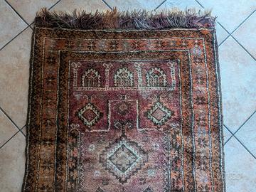 Tappeto persiano/orientale di manifattura artigianale annodato a mano in lana. Il tappeto è in perfette condizioni. Presenta sfumature naturali nel colore. Pulito e igienizzato con metodo domestico. Dimensioni 125x77cm (frange incluse). Sono disponibile ad inviare il video del tappeto per visualizzare meglio i dettagli, colori e condizioni. Offro una vasta varietà di tappeti. Sconto sul set con acquisti multipli