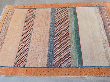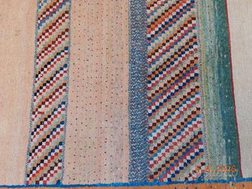 Solo 11 e 12 aprile SCONTO €200 Il tappeto Loristan-Gabbeh IR 101(127×192 cm) è un manufatto persiano autentico, annodato a mano dalle tribù nomadi delLoristannell'Iran occidentale. Questa specifica variante combina la robustezza tipica dei Gabbeh con una densità di nodi (circa 90.000 al mq) che indica un' ottima qualità costruttiva di fascia media, superiore ai modelli più grossolani. Realizzato dalle popolazioni nomadi Lori, riflette un'estetica tribale caratterizzata da design minimalisti e simbolici. Questo tappeto è abbastanza raro perché impreziosito dalla particolarità del disegno e i colori usati che escono dalla cosuetudine dei Loristan Gabbeh. Bellissimo. Si adatta perfettamente ad un arredamento minimalistasia come ad uno più classico. Peso Kg 10 Consegna in 3 - 4 gg con BRT