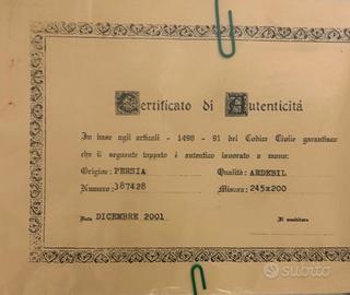 Tappeto persiano Ardabil annodato a mano, cm 245×200, lana & cotone, certificato di autenticità incluso. Ottimo stato, colori intensi. Preferito ritiro in zona / possibile spedizione assicurata.