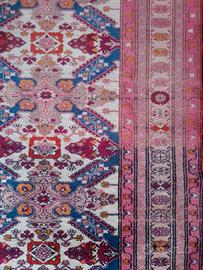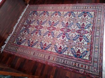 Grande, lussuoso tappeto persiano malate, “vecchio” (ovvero di maggior valore) in lana e seta del secolo XX. Il tappeto, perfettamente conservato è stato fatto pulire ed è conservato correttamente. Le irregolarità nel colore ne attestano l’età e il valore e sono da considerarsi un pregio. Colori molto vivaci, caldi, perfetti per un arredamento contemporaneo o antico. La frangia è conservata benissimo. È stato acquistato da importante negozio di Verona. MISURE: 195 x 255 cm