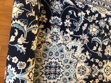 Proprio la seta dona lucentezza particolare, dando riflessi diversi a seconda della posizione dell'osservatore. È un tappeto ricco di dettagli e dai contrasti di colore molto decisi che lo distinguono da tanti altri messi in vendita. Colorazione decisamente classica, per un Nain: prevalentemente beige, blu scuro, celeste carta da zucchero. Davvero elegantissimo! Immaginalo con un divano blu o panna, magari Poltrona Frau!