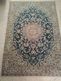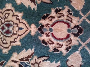 Vendo nuovissimo Tappeto persiano NAIN 9La, trama e ordito in cotone e/o seta, pelo in lana kork e ricami in seta; lo sfondo è verde. "La seta è un inserto che serve a sottolineare i dettagli e che sono annodati con la lana di pecora più pregiata, quella denominata "kork", cioè quella che si trova attorno alla zona del collo della pecora e che grazie all'alto contenuto di grasso di lana, è particolarmente morbida e facile da lavorare. Nella tintura del filato si usano esclusivamente colori naturali derivanti da piante e minerali, e gli abbinamenti cromatici da usare per i tappeti sono selezionati con la massima cura in modo che il risultato sia il più possibile armonioso.