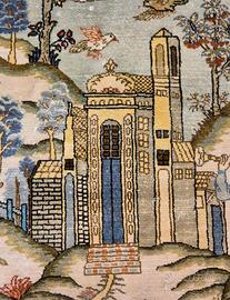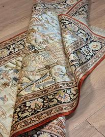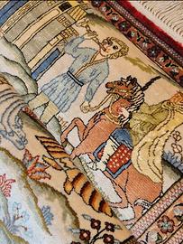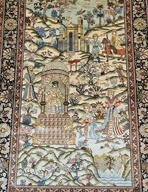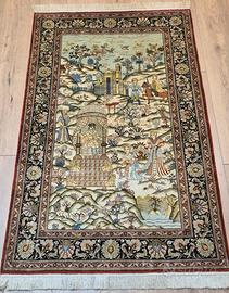 Vendo tappeto persiano orientale Ghom seta su seta fine misure 155x94 ricco di dettagli figurativo arazzo paesaggio di giardini annodato a mano Valore tappeto 7900 Prezzo trattabile