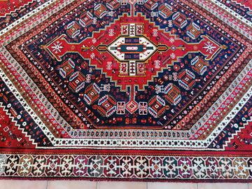 Vendesi tappeto persiano di Qashay vecchia lavorazione, lungo 2,90 mt. e largo 2,02 mt. Molto robusto e buona annodatura, con trama ordino e vello lana. L'impianto del disegno è particolare e si differenzia dagli altri tappeti di questa provenienza. Le ondulazioni che si notano dalle foto sono dovute perché il tappeto è piegato e spariranno dopo alcuni giorni che è steso. Più che buono lo stato di conservazione per un tappeto di quest'epoca, con pieno vello e bordi perfetti. Tappeto che per il suo disegno si sposa con arredamenti antichi, classici e moderni. E' possibile visionarlo e ritirarlo a Manfredonia (FG), spedizione a carico dell'acquirente.
