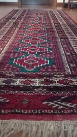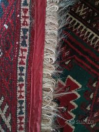 Tappeto Bashir afgan dai colori brillanti, vello alto, ottima fattura. Molto versatile perché misura 96 di larghezza e 214 di lunghezza. La frangia in lana è molto lunga e per evitare di rovinarla l'ho piegata e fermata con un filo, ma si può sciogliere.