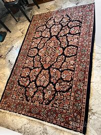 Pregiato tappeto persiano Saruk, annodato a mano, lana su cotone, colori vegetali. È dotato di fasce di pelle laterali fondamentali per preservare il tappeto. Importato dall’Iran, misure 208x135