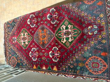 bellissimo tappeto persiano originario della regione di shiraz annodato a mano caratterizzato da motivi geometrici distintivi