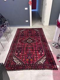 Tappeto annodato a mano, in lana, tipo persiano, stile nomade (Shiraz) misure 270x 150, vello non consumato, colori vivi. Consegna €20 su Roma , €30 su provincia di Roma, €40 province limitrofe. Consegna anche lungo il tragitto Roma-Verona, da concordare. Perfetto per sala da pranzo fronte divano o sotto tavolo