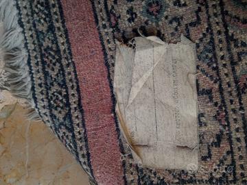 In vendita un tappeto persiano annodato a mano (come confermato dall'etichetta originale sul retro che riporta "HAND KNOTTED WOOLEN CARPET"). Questo tappeto è stato acquistato alla fine degli anni '80 presso un prestigioso negozio di antiquariato a Siracusa, garantendone la provenienza e la qualità dell'epoca. Il disegno presenta un classico medaglione geometrico centrale su un fondo rosa salmone/mattone, circondato da dettagliati bordi in tonalità verde salvia, blu scuro e crema. Un'armonia di colori che ha mantenuto la sua eleganza nel tempo. Manifattura: Autentico annodato a mano (Hand Knotted). Materiale: Lana di qualità. Periodo: Fine anni '80. Origine dell'Acquisto: Antiquariato Siracusa. Misure: 180 cm x 97 cm. Condizioni: Il tappeto è in ottime condizioni generali, è stato conservato con cura in un ambiente domestico. L'etichetta sul retro è logora dal tempo ma ancora leggibile, testimoniando l'autenticità della lavorazione. Le frange sono presenti e ben conservate su uno dei lati corti. Perfetto per dare un tocco di calda eleganza vintage a un corridoio, un ingresso o come tappeto d'accento in una camera da letto. Un'occasione per possedere un pezzo di artigianato tessile con una storia alle spalle.