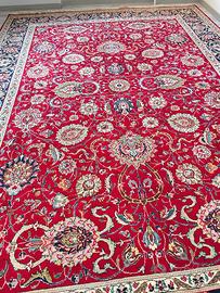 Tappeto Persiano Tabriz Annodato a Mano – 343 × 245 cm Splendido tappeto persiano Tabriz annodato a mano, elegante e di grande effetto, in ottime condizioni. Il tappeto è stato lavato accuratamente e pulito, pronto per essere utilizzato. Presenta un raffinato medaglione centrale con ricchi motivi floreali e decorazioni tradizionali persiane, finemente lavorate. I colori sono brillanti e armoniosi: 🎨 Colori principali: Rosso rubino intenso, blu navy, avorio, beige, verde salvia, con eleganti dettagli floreali multicolore. 📏 Misure: 343 × 245 cm ✨ Annodato a mano ✨ Ottime condizioni ✨ Pulito e pronto all'uso Tappeto di grande eleganza, ideale per salotto, soggiorno, sala da pranzo o studio, perfetto per dare calore e prestigio all'ambiente. la consegna senza impegno zona provincia Roma è gratuita.