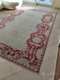 Tappeto Persiano bordo rosso, interno color marroncino chiaro. Nessun difetto particolare, da sottoporre a trattamento di pulizia