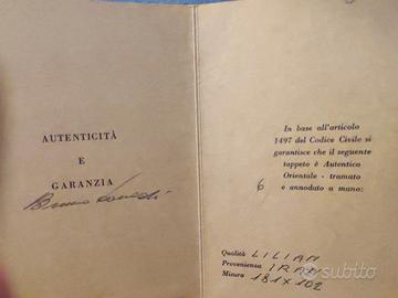 vendo tappeto persiano con certificato di autenticità in allegato. Misure: 181x102. Ritiro presso il mio domicilio.