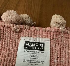 Vendo per cambio arredo, tappeto rettangolare rosa marca Maisons du monde con dimensioni 120x180 cm e dotato di Pompon.