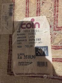 Vendo causa trasferimento bellissimo tappeto OSBEK in lana dimensioni 269 x 185 in perfette condizioni e pulizia. Ritiro in zona Rimini marina centro
