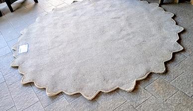 Tappeto in lana rotondo color beige con trama. Larghezza diametro 220 cm. Tenuto con cura.