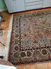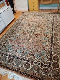 Bellissimo tappeto annodato a mano di qualità Sahand (produzione Romania, stile persiano classico). Misure: 302 × 210 cm (circa 6,3 m²) Anno: Novembre 1979 (certificato originale di origine e garanzia allegato) Numero tappeto: 28 Venduto originariamente da L. Gaeti Mobili - Brescia (negozio storico) Disegno tradizionale con medaglione centrale e cornici floreali ricche. Colorazione delicata e elegante: fondo rosa antico/beige, tocchi di azzurro, marrone e crema. Lana di buona qualità, robusto e con ottimo effetto vintage. Condizioni: Usato ma ben conservato, colori ancora vivi, nessun buco o danni importanti (frange integre, da verificare di persona). Ideale per soggiorno, camera o studio. Prezzo originale dell'epoca: 3.056.000 lire (equivalente a migliaia di euro di oggi). Perfetto per chi cerca un tappeto autentico d'epoca, caldo e di carattere, a un prezzo accessibile. Non è un persiano iraniano antico, ma un Sahand classico molto apprezzato per resistenza e bellezza. Possibilità di ritiro a mano (Brescia e provincia) o spedizione imballata con cura. Prezzo originale: 3056€