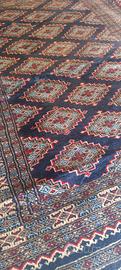 I tappetiBukhara Kashmirsonopregiati manufatti annodati a mano in Pakistan, caratterizzati da lane molto morbide, setose e luminose, che riproducono i classici disegni geometrici e i motivi "gul" (ottagonali) dei tappeti turcomanni. Spesso chiamati "Bukhara pakistani", sono apprezzati per la loro robustezza, l'annodatura serrata e la tipica colorazione rossa, ideale per vari stili di arredamento.