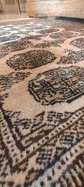 I tappetiBukhara Kashmirsonopregiati manufatti annodati a mano in Pakistan, caratterizzati da lane molto morbide, setose e luminose, che riproducono i classici disegni geometrici e i motivi "gul" (ottagonali) dei tappeti turcomanni. Spesso chiamati "Bukhara pakistani", sono apprezzati per la loro robustezza, l'annodatura serrata e la tipica colorazione rossa, ideale per vari stili di arredamento.
