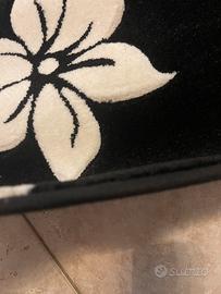Bellissimo tappeto moderno da soggiorno ovale, con motivo floreale bianco su sfondo nero. - Misure: 2x1 metri