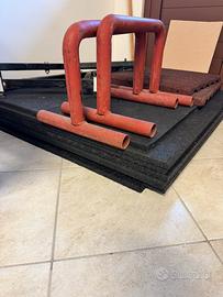 Vendo tappeti di gomma 1 metro per 1 metro. Sono 9 mattonelle cosi piu 1 tagliata a metà, sono come nuove pagate 50€ a mattonella … 500€ Antirumore per tappeto palestra Da caricare a mano impossibole spedire