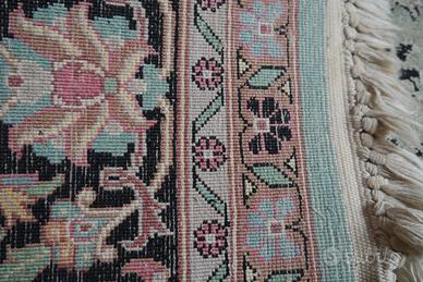 Tappeto orientale stile persiano/Nain, in pura seta, annodato a mano.