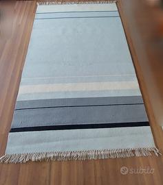 Tappeto stuoia Ojama con frange a righe bianco celeste e blu. Nuovo, mai usato. Misure 170 x 240cm