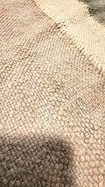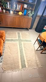 Bel tappeto a tessitura piatta in fibra naturale. Usato, presenta un paio di macchiette evidenziate in foto, ma ben messo e senza strappi. Misure 220x150