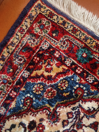 Tappeto fatto a mano, pulito e igienizzato misure 215x 85 cm ottime condizioni colori e frange, certificato di originalità,come ricevuto dal venditore l'etichetta sotto il tappeto e stata tolta da me perché le puntine spesse si sentivano attraverso il tappeto, per info contattatemi