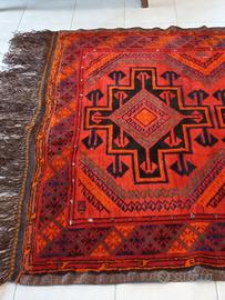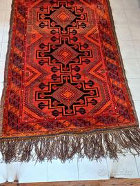 Vendo splendido tappeto turco, annodato a mano, misura 323x170 cm. Vello, trama ed ordito in lana, colorazioni vegetali, usato ma in ottime condizioni. Disegno geometrico, tinte rosse.
