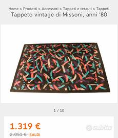 tappeto vintage originale di Missoni anni 80 Il tappeto è integro Attualmente esiste solo un'altro uguale .