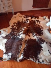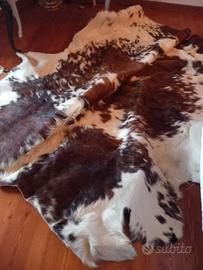 Tappeto vintage in pelle di mucca, bianco e marrone, circa 2 × 2 m. Ottime condizioni, nessun difetto. Usato molto poco.
