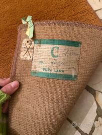 Realizzato in pura lana (come da etichetta originale), presenta un colore marrone caldo / ruggine, tipico dell’estetica mid-century, facilmente abbinabile ad ambienti moderni o d’epoca.