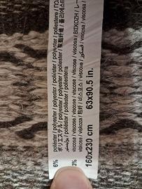 Vendo tappeto Zara Home marrone e bianco di 160 x 230 cm, in buone condizioni, composto all'81% da lana, al 10% da cotone, al 6% da poliestere, al 3% da viscosa.